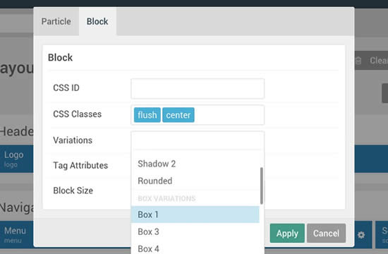 The Image Grid particle is a simple solution for displaying a small grid of images. Choose up to 5 columns, and an unlimited amount of rows. All images are clickable and a RokBox modal will show the full sized image.